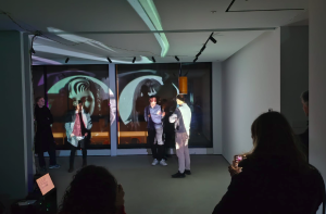 Žanr: videozvočna interaktivna instalacija /za 4 videoprojektorje in 6 zvočnih teles